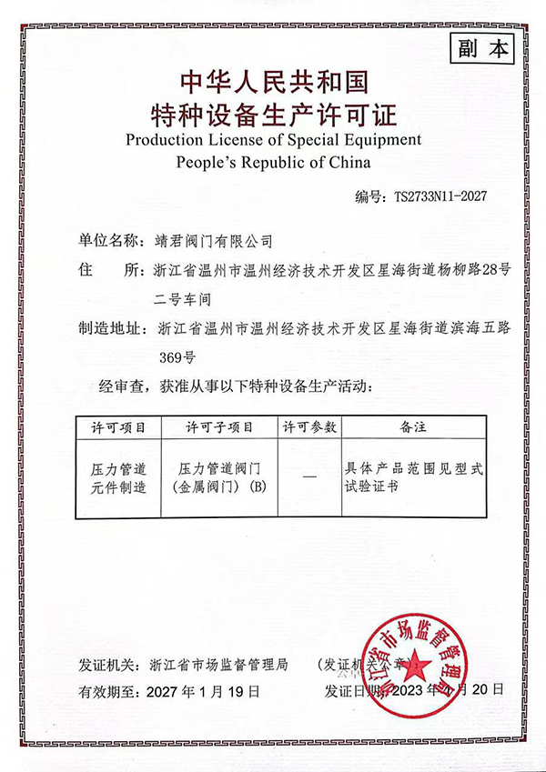 靖君閥門有限公司是專業(yè)生產(chǎn)閥門系列的企業(yè),座落于溫州經(jīng)濟(jì)技術(shù)開發(fā)區(qū)濱海園區(qū),交通便利。本公司是一家集設(shè)計(jì)、開發(fā)、生產(chǎn)于一體的閥門企業(yè),主要產(chǎn)品有各類高平臺球閥、氣動閥門、電動閥門、螺紋球閥、法蘭球閥、閘閥、截止閥、止回閥、一片式,兩片式,三片式球閥及絲扣閥門,過濾器等系列產(chǎn)品產(chǎn)品可根據(jù)不同要求分別采用GB、API、ANSI、BS標(biāo)準(zhǔn)進(jìn)行設(shè)計(jì)、生產(chǎn)和驗(yàn)收??筛鶕?jù)使用介質(zhì)、溫度不同及材料分別采用碳鋼、不銹鋼、低溫鋼、合金鋼、耐高溫、超高溫特殊鋼等;傳動方式可分別選用手動、 蝸輪傳動、氣動、液動、電動等。